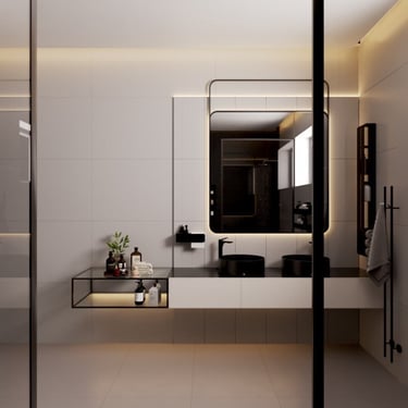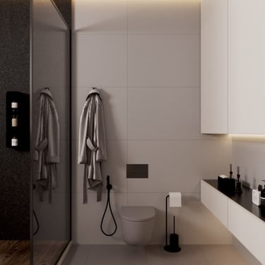 Bu projedeki tasarımın kilit unsurlarından biri de ışığı bir yapı malzemesi gibi kullanmaktı. Geniş pencerede kullanılan ahşap jaluziler, gün ışığını kontrollü bir şekilde içeri alırken, ritmik gölge oyunları yaratıyor. Bu gölgeler, mekana derinlik ve dramatik bir hava katarak misafirlere huzurlu bir arınma deneyimi sunuyor. Işığın bu şekilde yönetimi, mekanın atmosferini günün farklı saatlerinde değiştiriyor.
